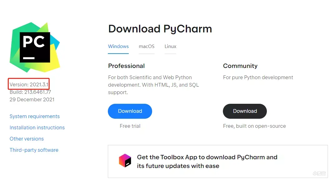 找到最新版本的pycharm,这里就以windows专业版为例。点击下载。
