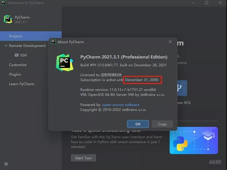 Pycharm 2021.3.1版本可以激活到2099年。
